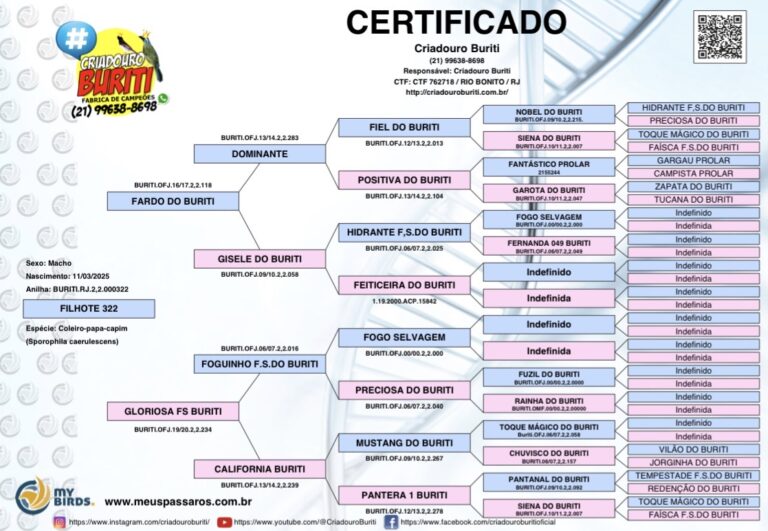 CONFIRA A ÁRVORE GENEALÓGICA DA AVE